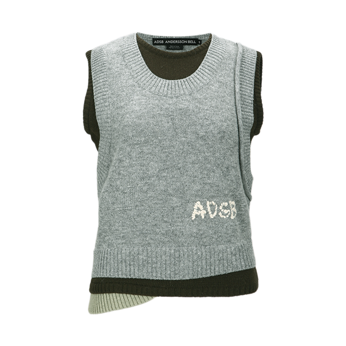 ADSB 앤더슨벨 부클 케이블 패치워크 니트 베스트 차콜