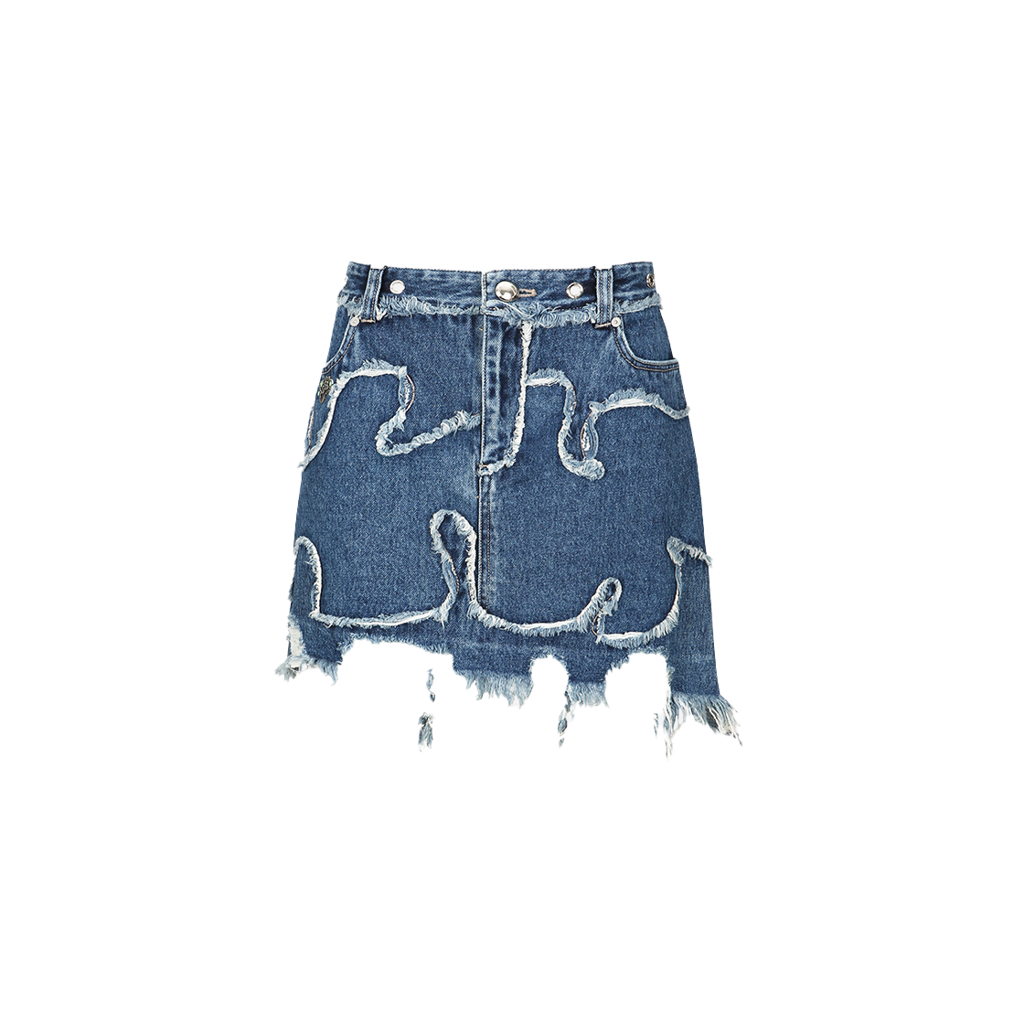 ADSB 앤더슨벨 퍼 에지 데님 프린트 스커트 블루
