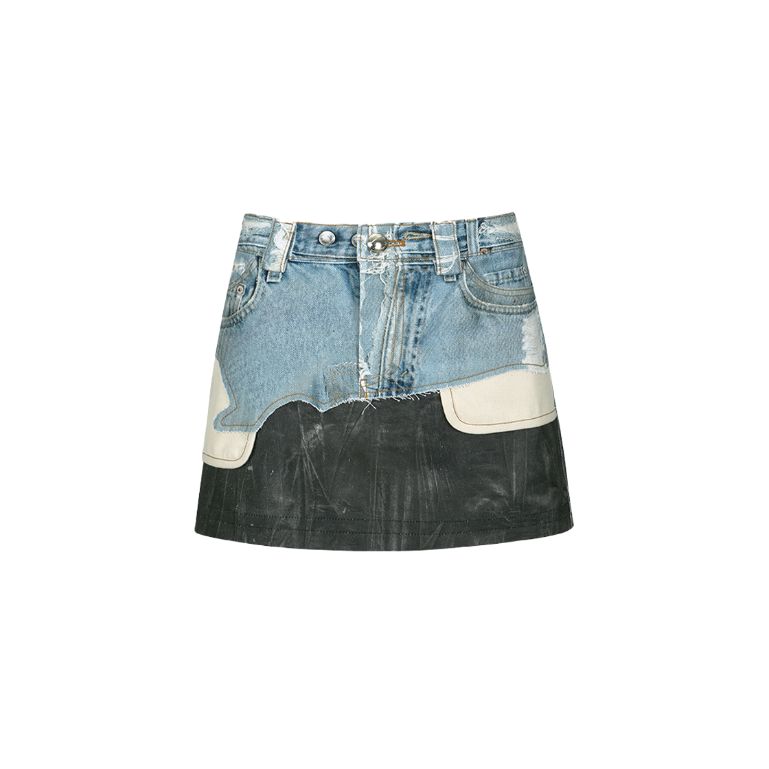 ADSB 앤더슨벨 우먼 포우 데님 & 레더 프린티드 미니 스커트 데님 블랙