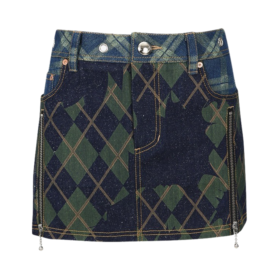 ADSB 앤더슨벨 우먼 키키 브로큰 아가일 데님 스커트 블루