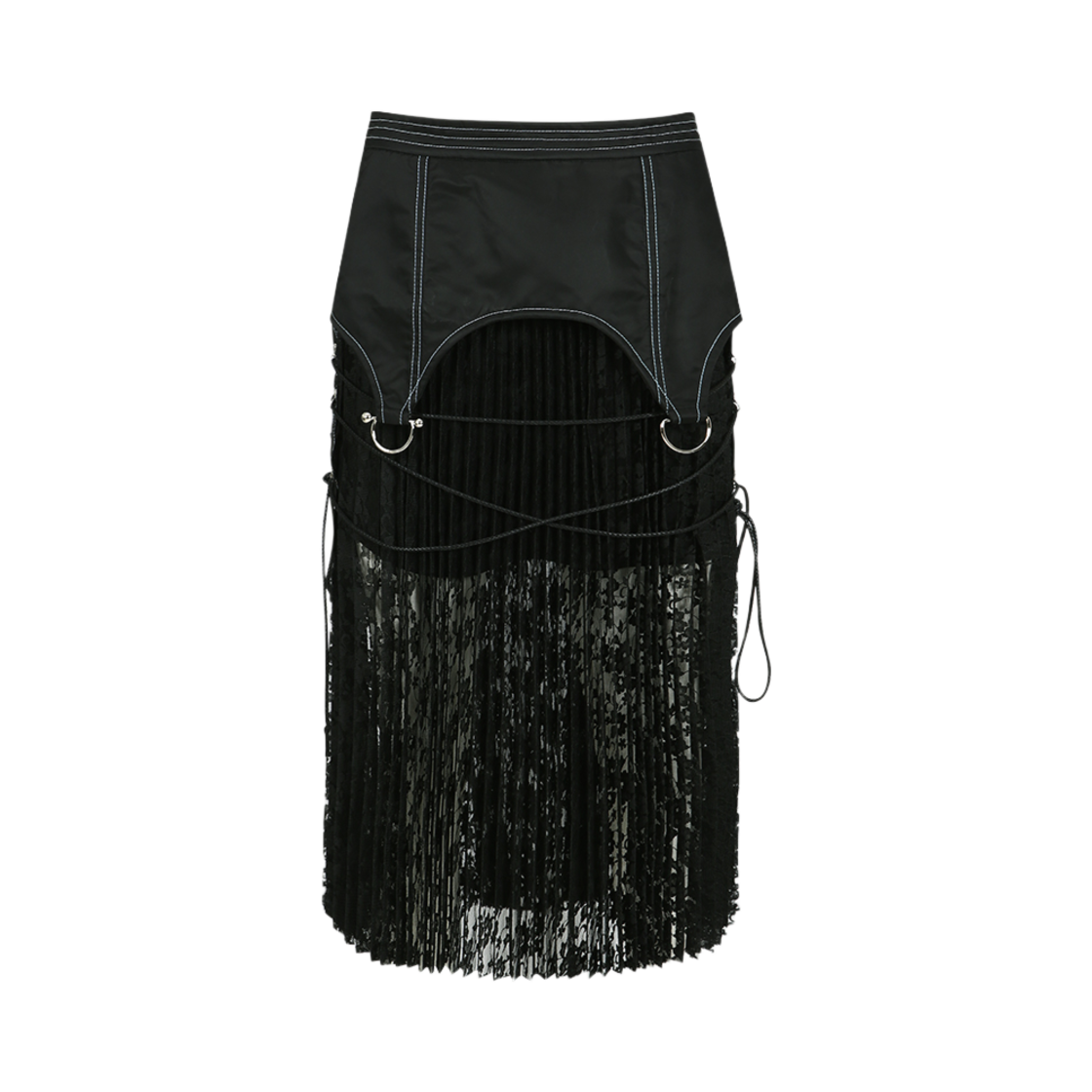ADSB 앤더슨벨 우먼 레이스 콤비네이션 플리츠 롱 스커트 블랙