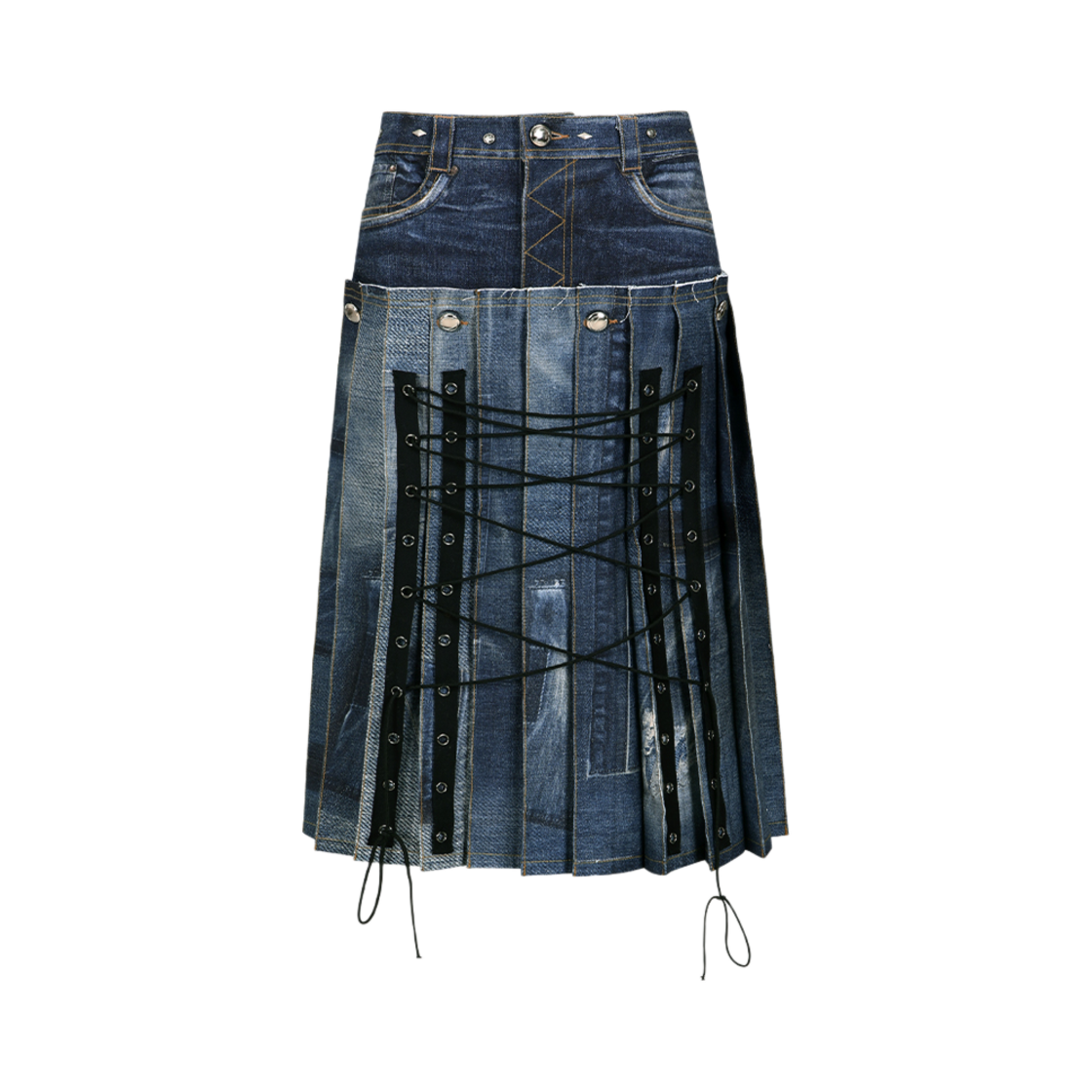 [KREAM 단독] ADSB 앤더슨벨 우먼 올 데님 프린티드 플리츠 스커트 블루