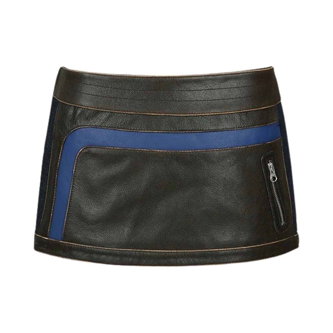 ADSB 앤더슨벨 우먼 데님 콤보 레이싱 레더 스커트 브라운