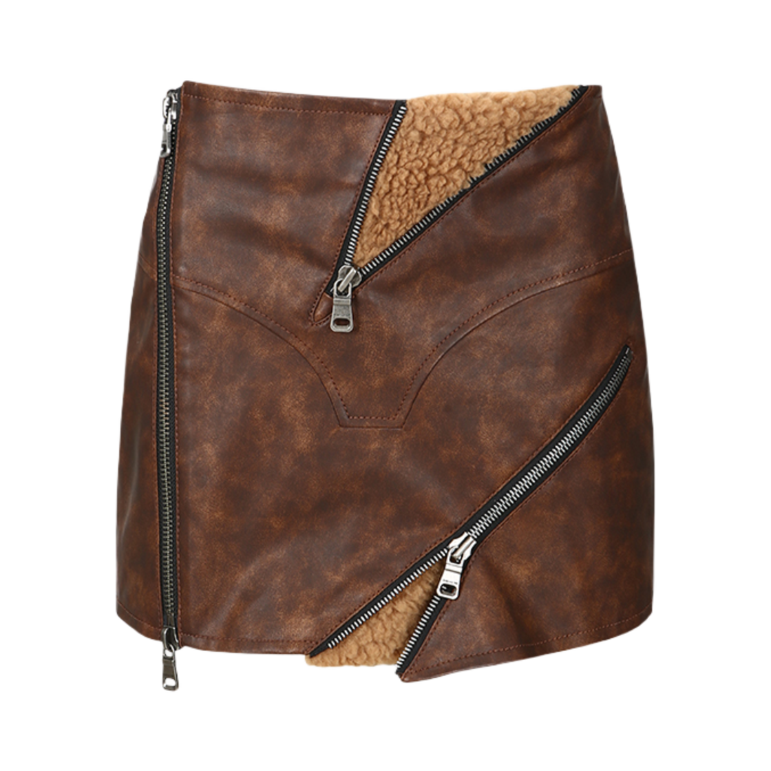ADSB 앤더슨벨 우먼 오스틴 포우 레더 셔링 스커트 브라운