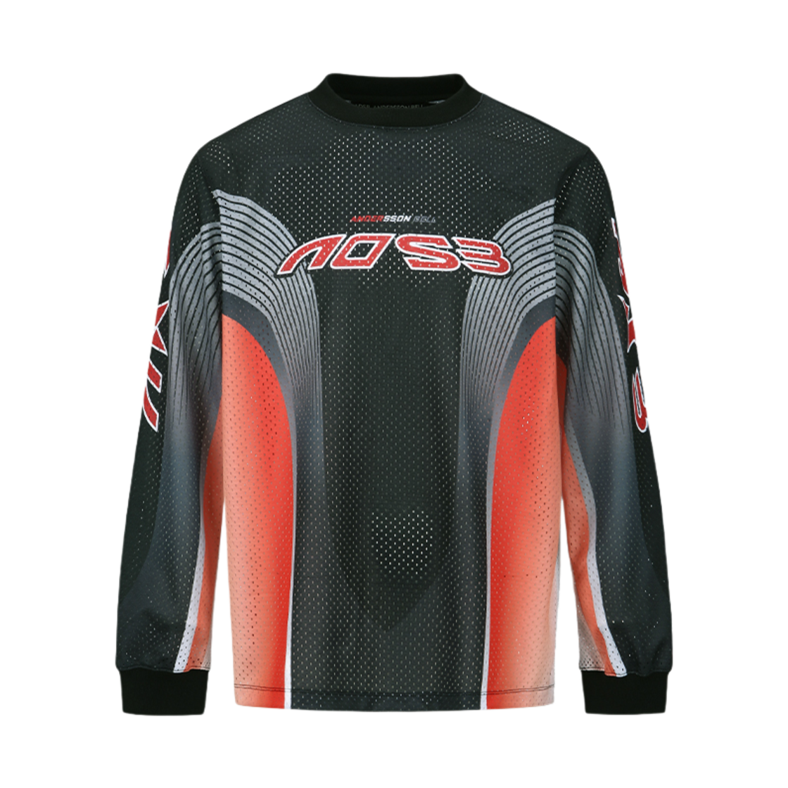 ADSB 앤더슨벨 메쉬 레이싱 롱슬리브 티셔츠 블랙 레드