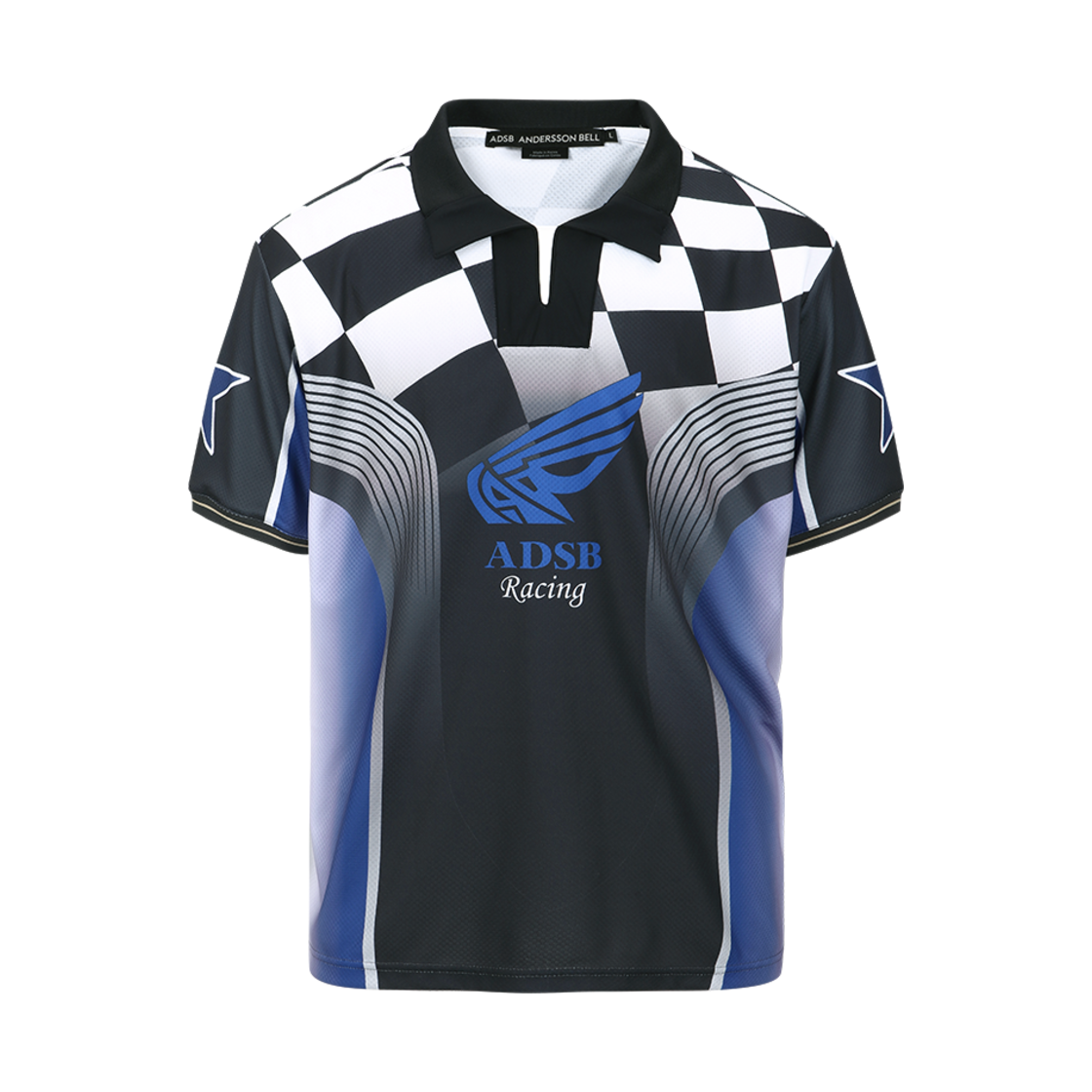 앤더슨벨 체커보드 레이싱 티셔츠 블루 블랙