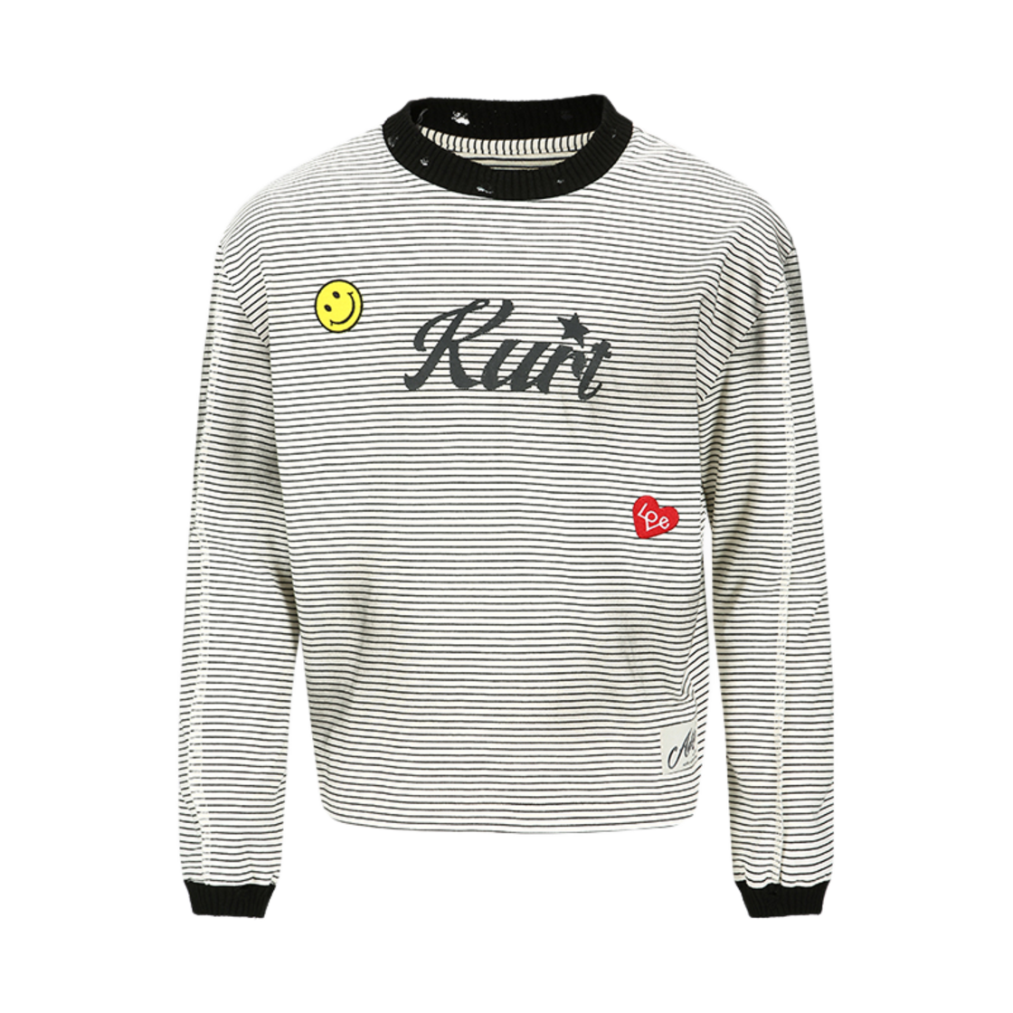 앤더슨벨 하트 메세지 스트라이프 크루넥 스웨터 블랙