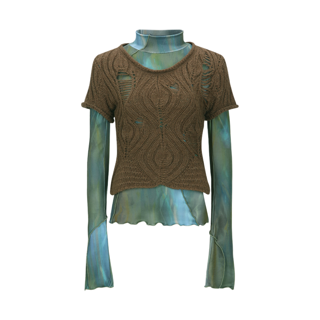 ADSB 앤더슨벨 캡 슬리브 스웨터 레이어드 탑 브라운