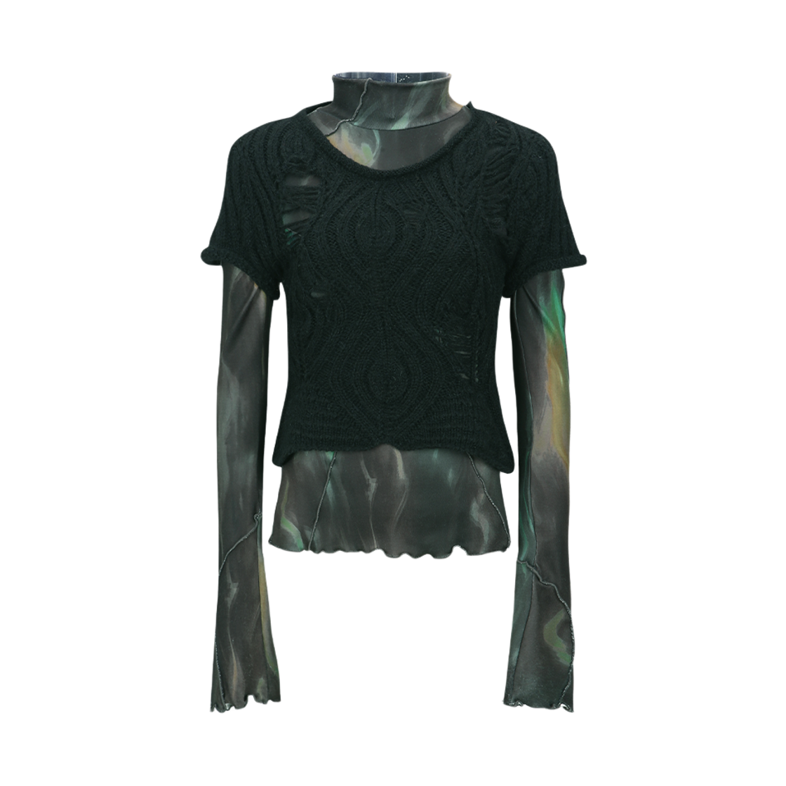 ADSB 앤더슨벨 캡 슬리브 스웨터 레이어드 탑 블랙