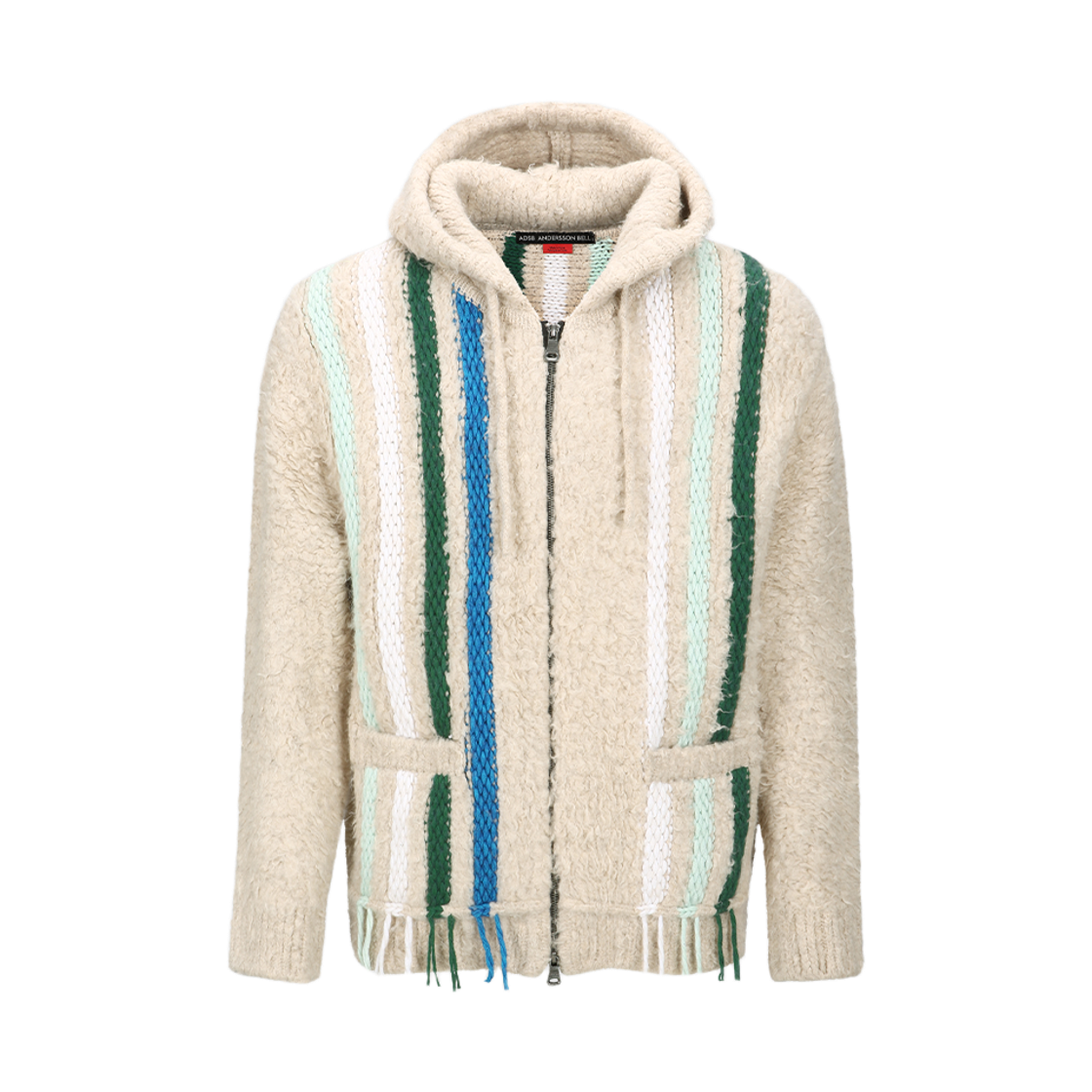 ADSB 앤더슨벨 유니섹스 리버스 스트라이프 니트 후디 에크루