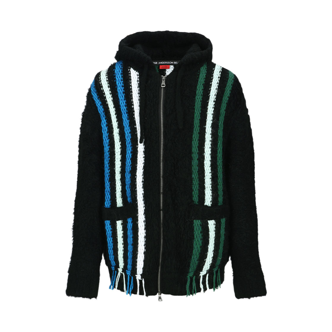 ADSB 앤더슨벨 유니섹스 리버스 스트라이프 니트 후디 블랙