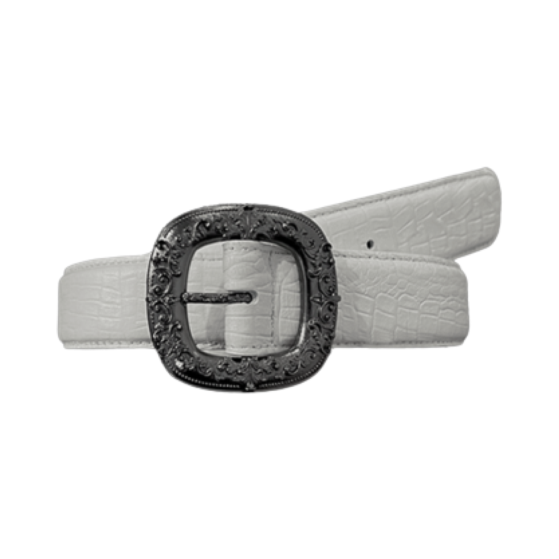 언더마이카 더블 플로럴 버클 파이썬 이펙티드 레더 벨트 옵시디언