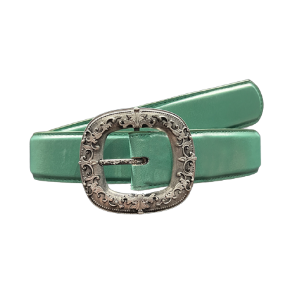 언더마이카 더블 플로럴 버클 플레인 레더 벨트 그린