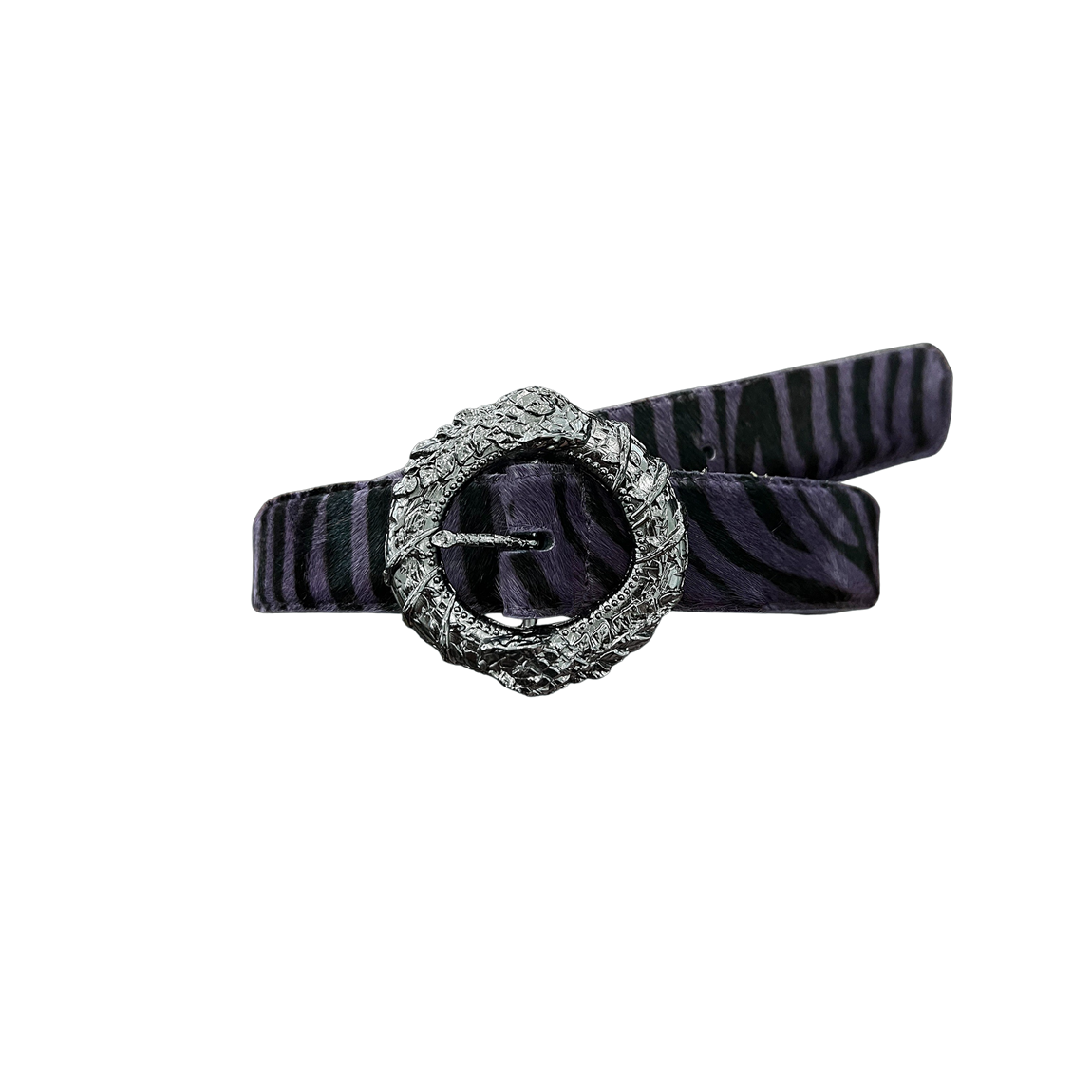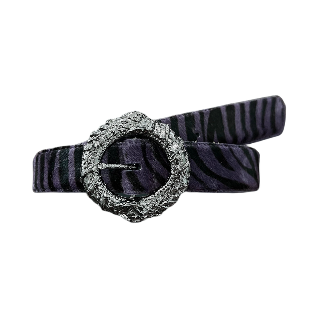 언더마이카 우로보로스 루프 버클 카프 헤어 레더 벨트 지브라 퍼플