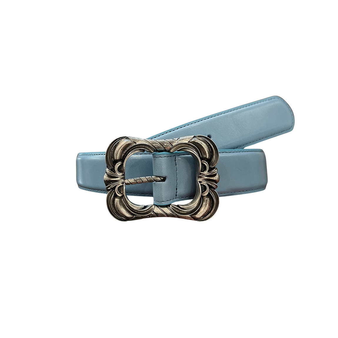언더마이카 더블 플로럴 버클 플레인 레더 벨트 스카이