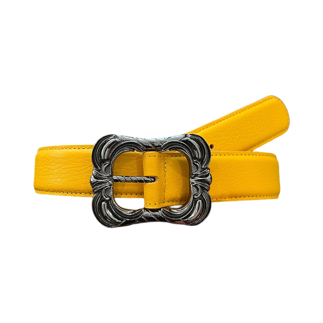 언더마이카 더블 플로럴 버클 플레인 레더 벨트 옐로우