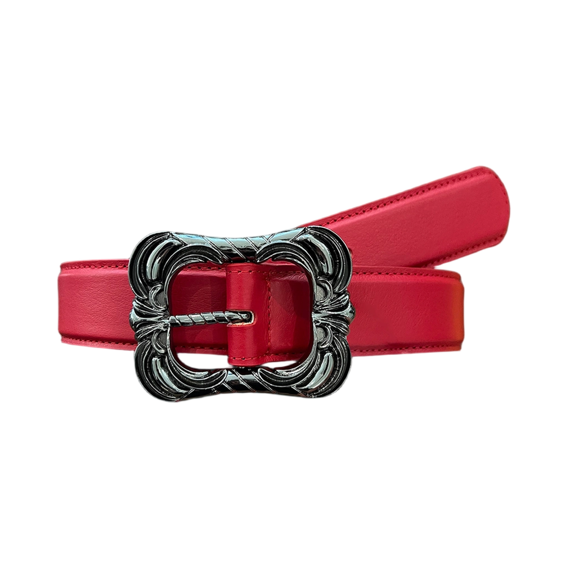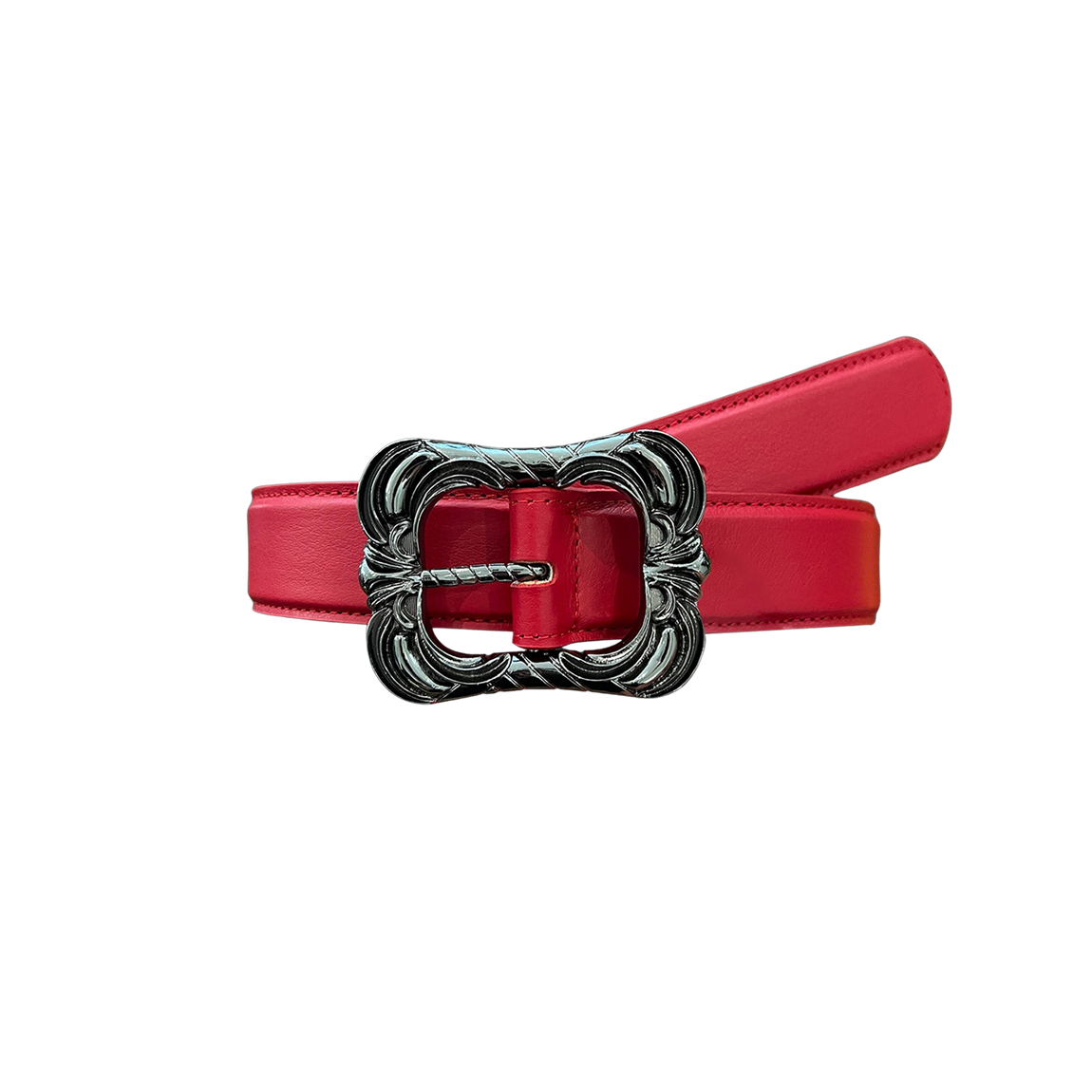 언더마이카 더블 플로럴 버클 플레인 레더 벨트 레드