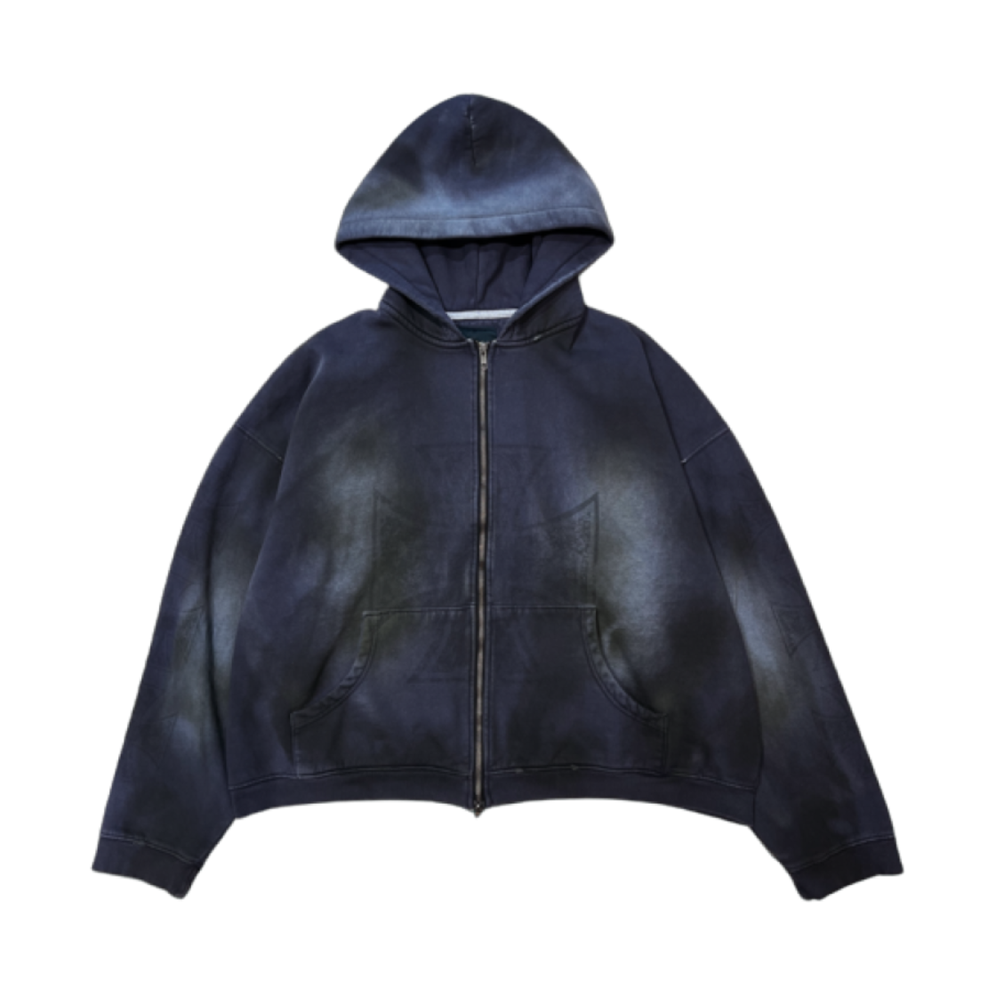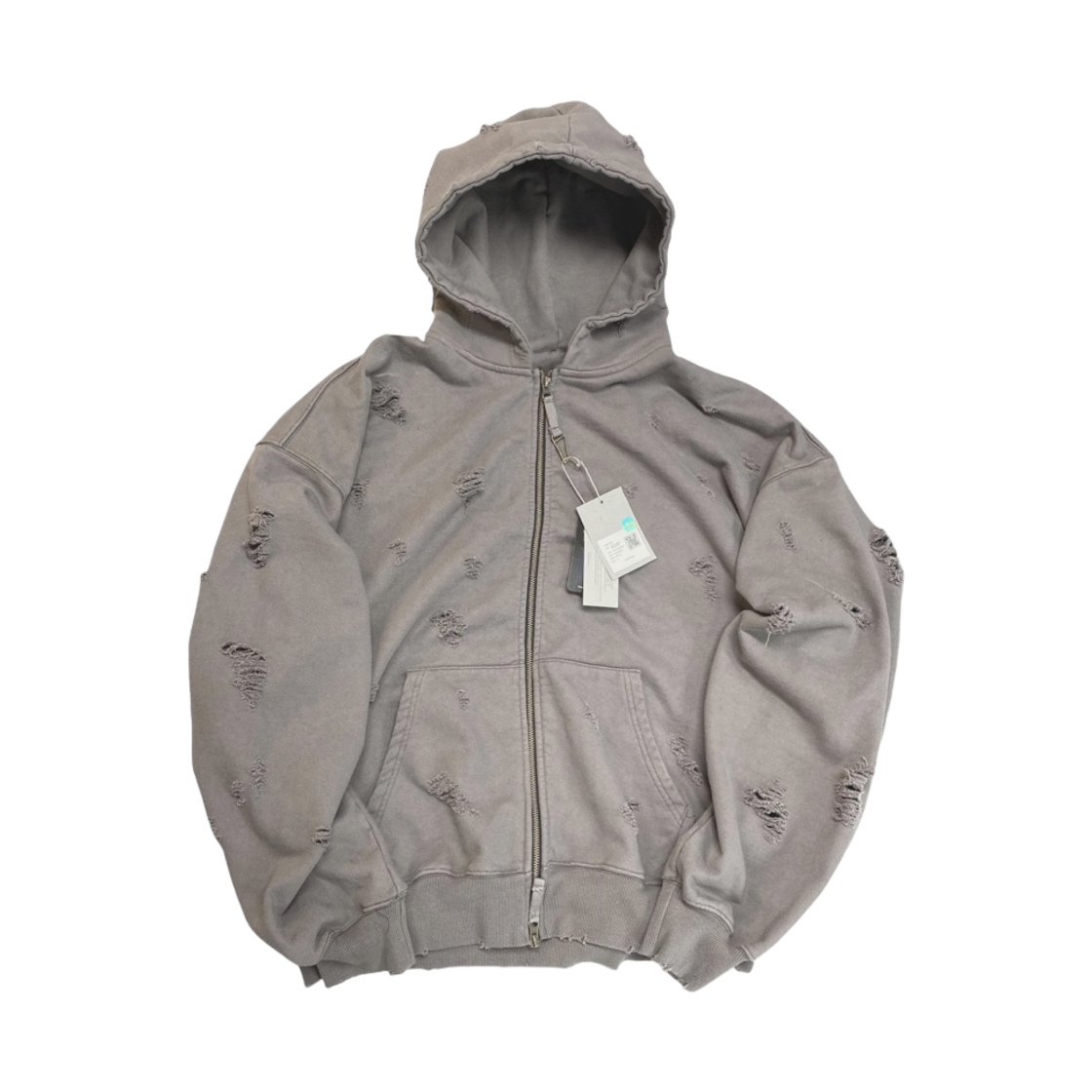 언더마이카 오터 오버사이즈 데미지 워시드 후드 집업 더스트 - 23SS