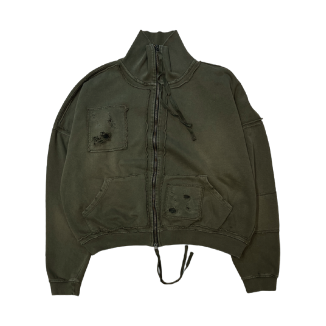 언더마이카 오터 오버사이즈 데미지 워시드 후드 집업 헌터 그린 - 23SS