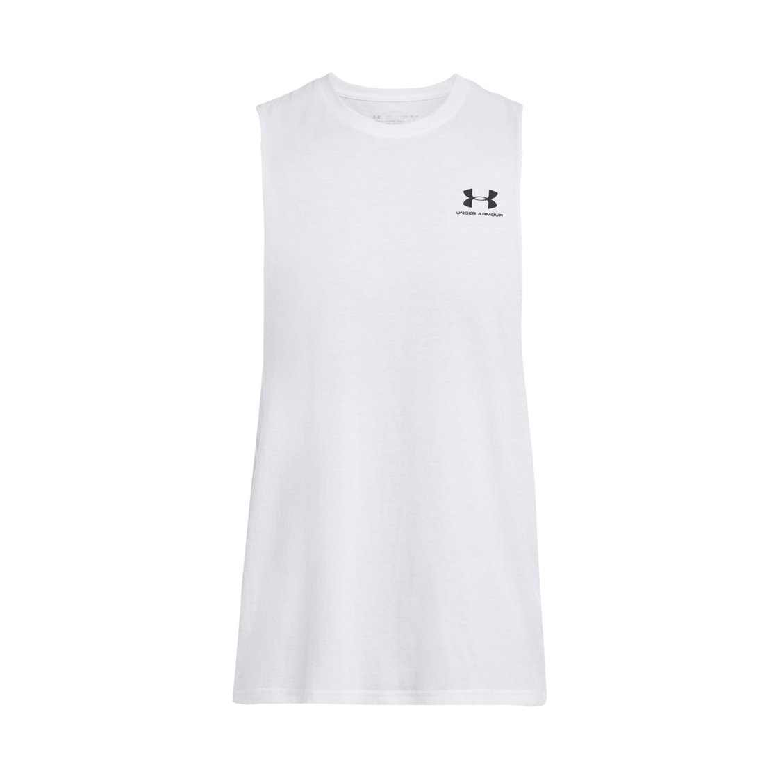 언더아머 레프트 체스트 컷오프 탱크 화이트 블랙