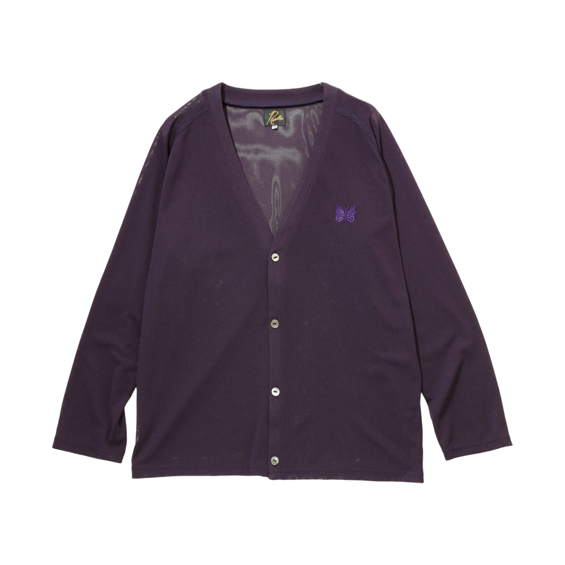 니들스 V 넥 가디건 폴리 메쉬 에그플랜트
