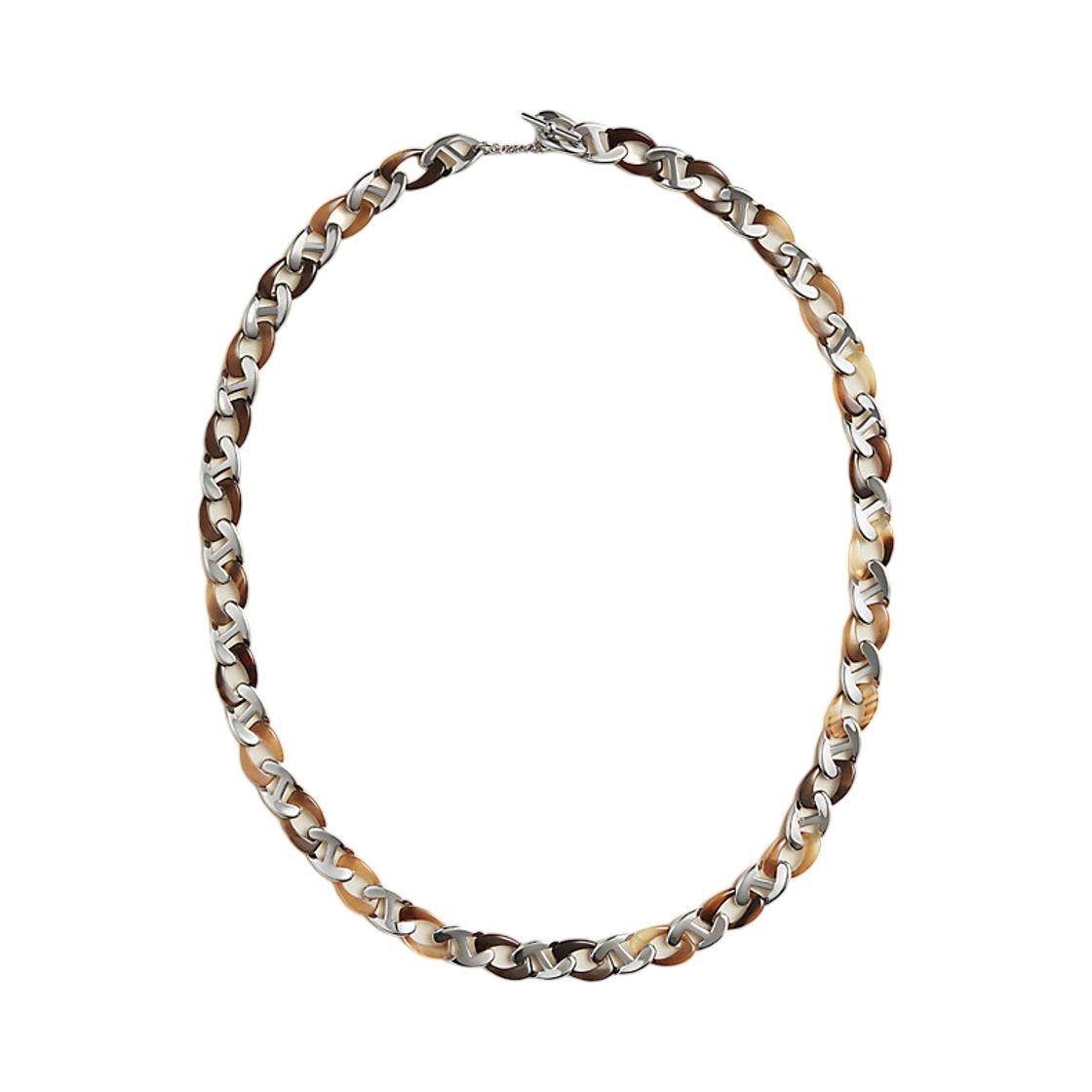 에르메스 라지 샹달 D'H 네클리스 혼 메탈 & 실버