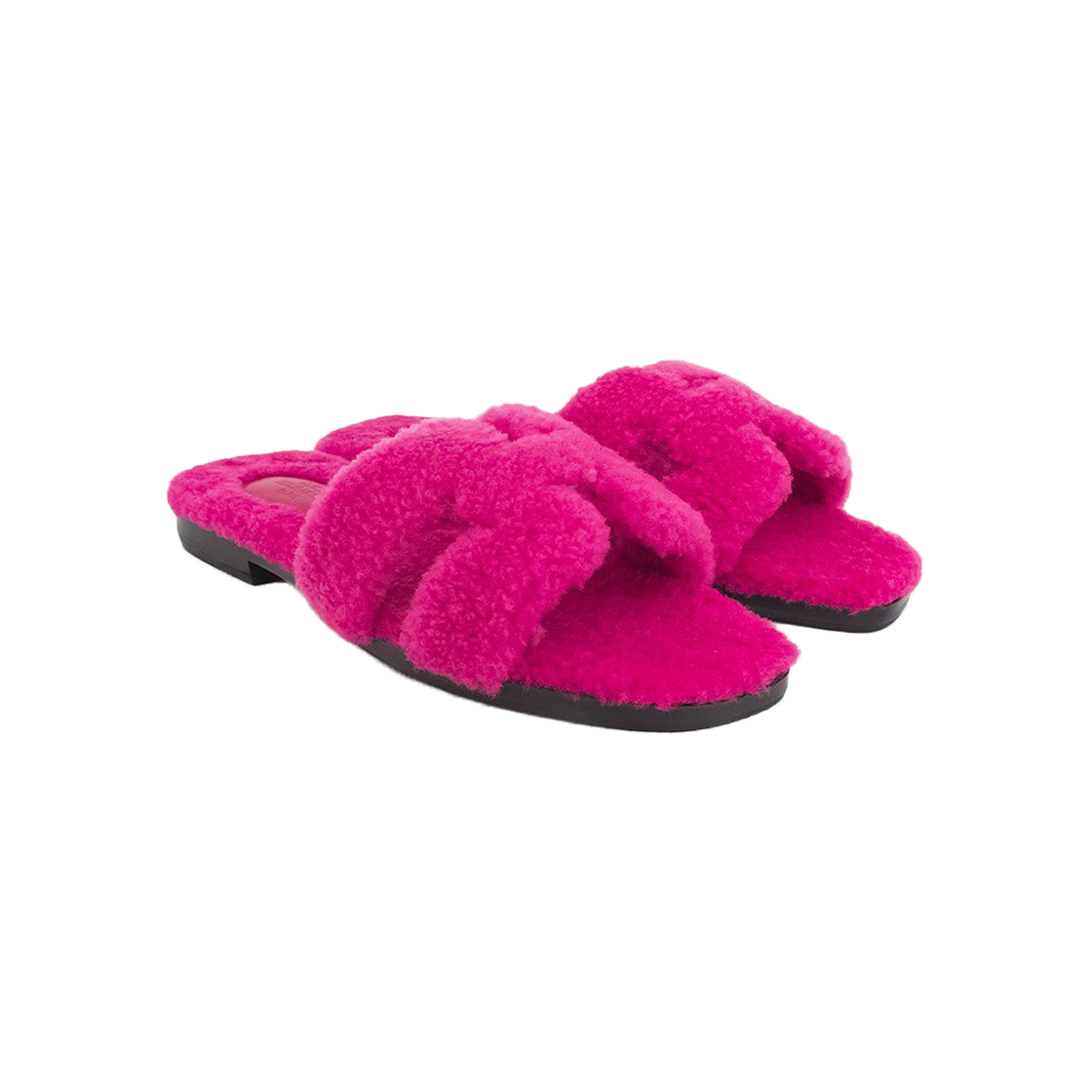 (W) 에르메스 오란 샌들 울스킨 & 로즈 뒤 데제르