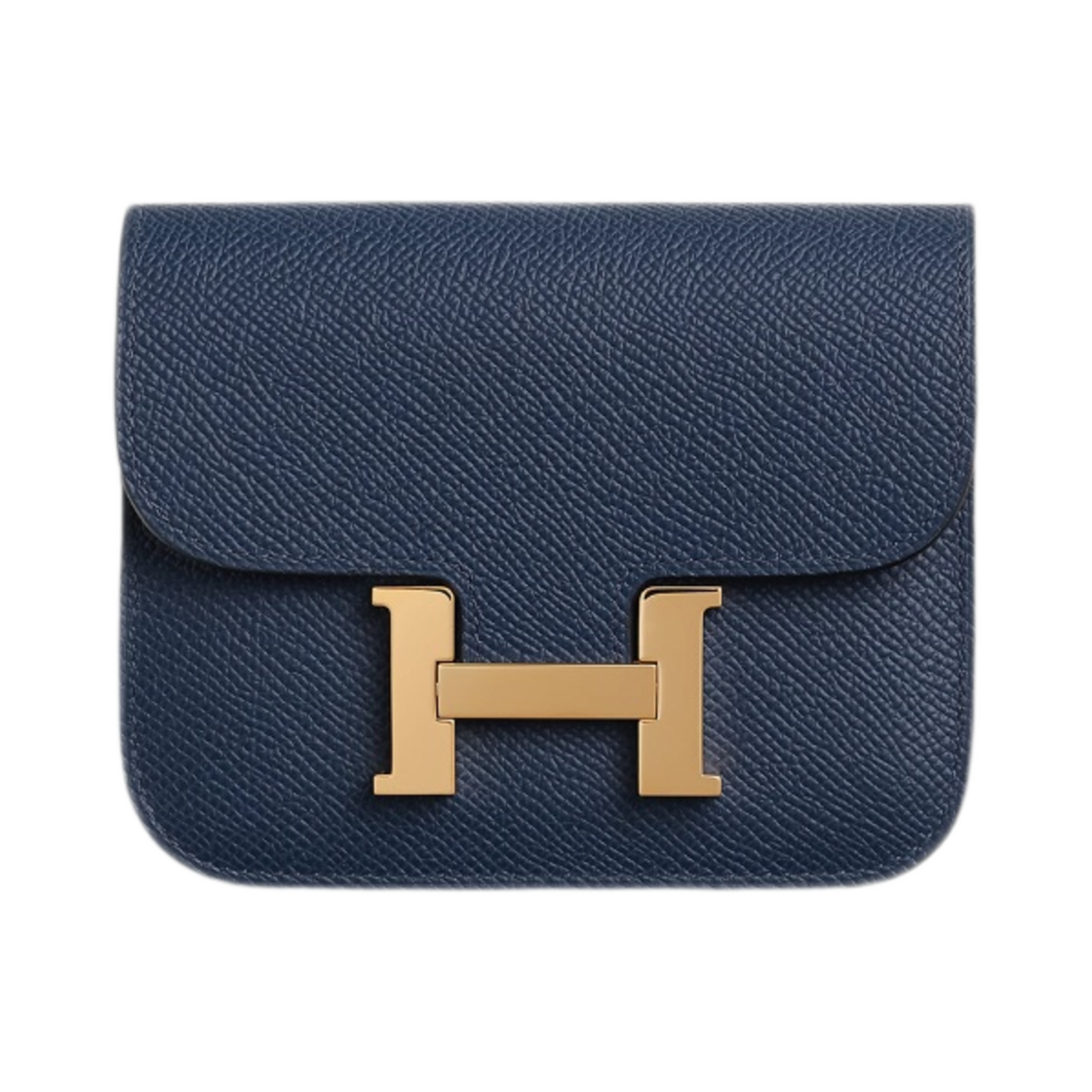 에르메스 콘스탄스 슬림 지갑 앱송 & 골드 하드웨어 블루 네이비