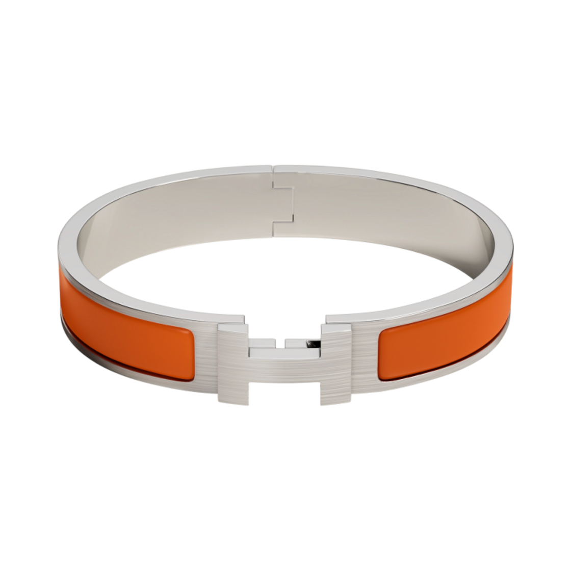 에르메스 클릭아슈 브레이슬릿 브러쉬드 팔라듐 하드웨어 & 오랑쥬 매트