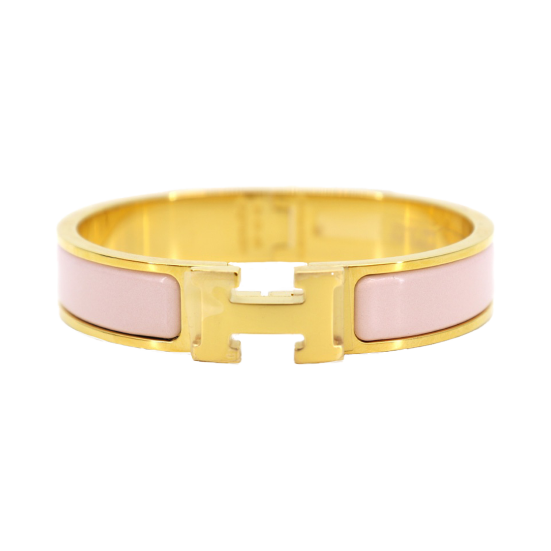 (W) 에르메스 미니 클릭 샹달 브레이슬릿 골드 하드웨어 & 로즈 컹되르