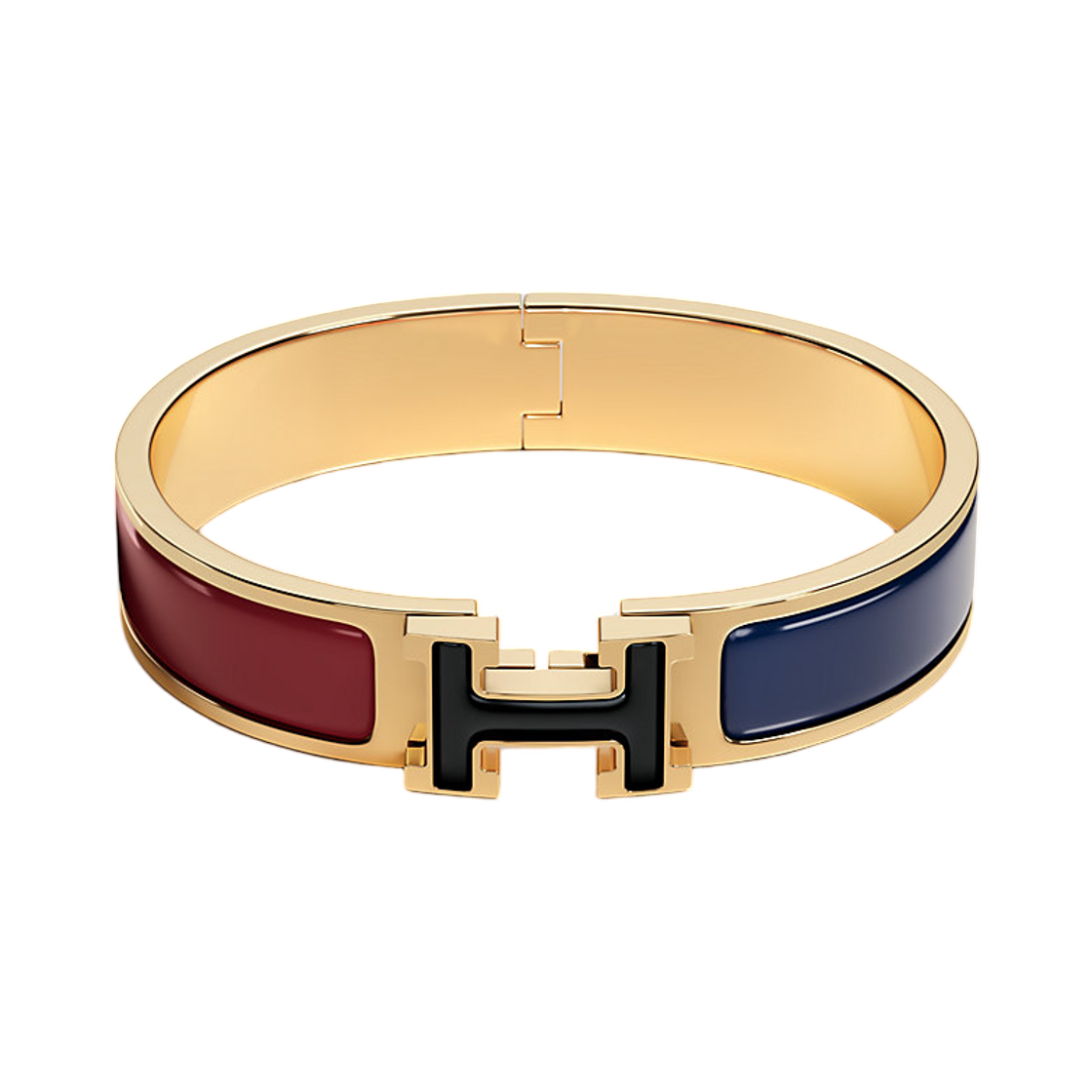 (W) 에르메스 클릭아슈 브레이슬릿 골드 하드웨어 & 마롱 글라세