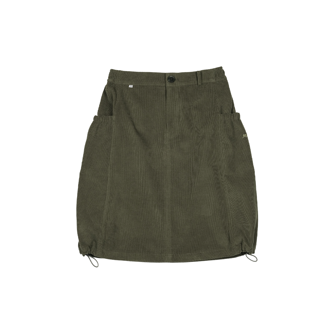 에메모가든 우먼 펌킨 코듀로이 미디 스커트 카키
