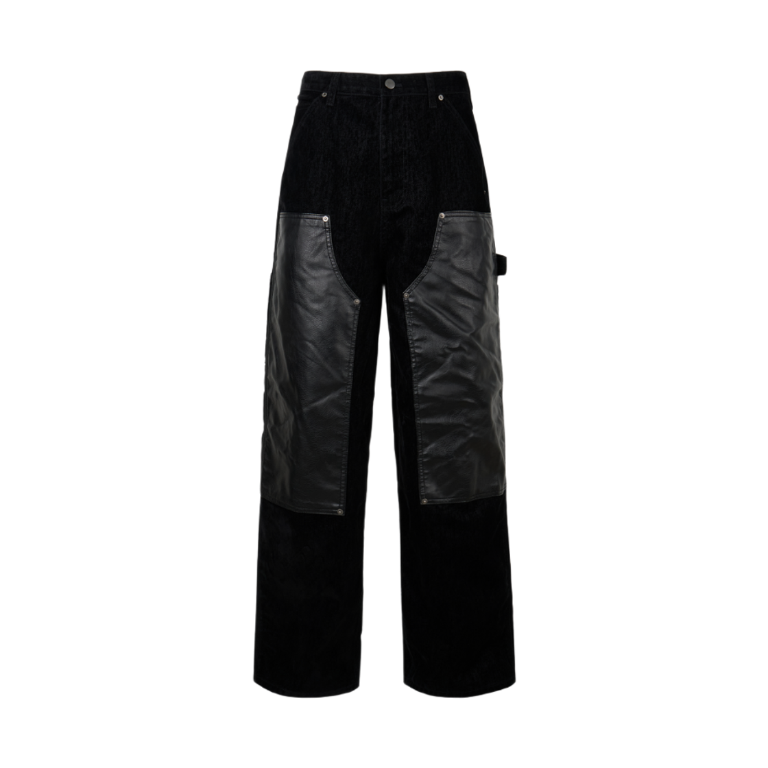 에모스탠스클럽 벨벳 레더 패널 배기 카팬터 진 블랙