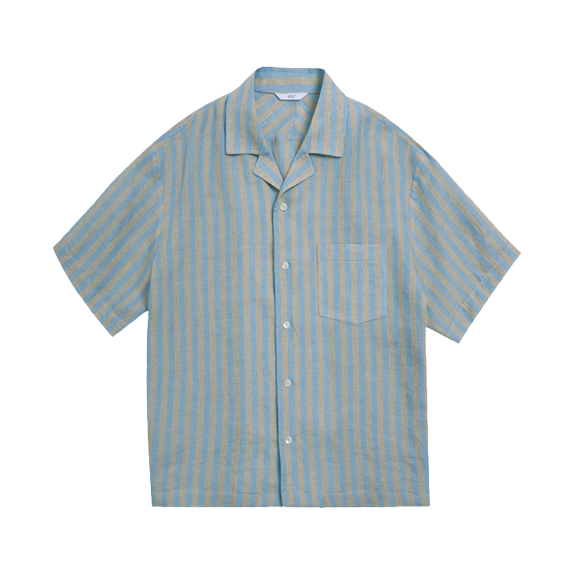 에스티유 백 레글런 스트라이프 린넨 셔츠 스카이 블루