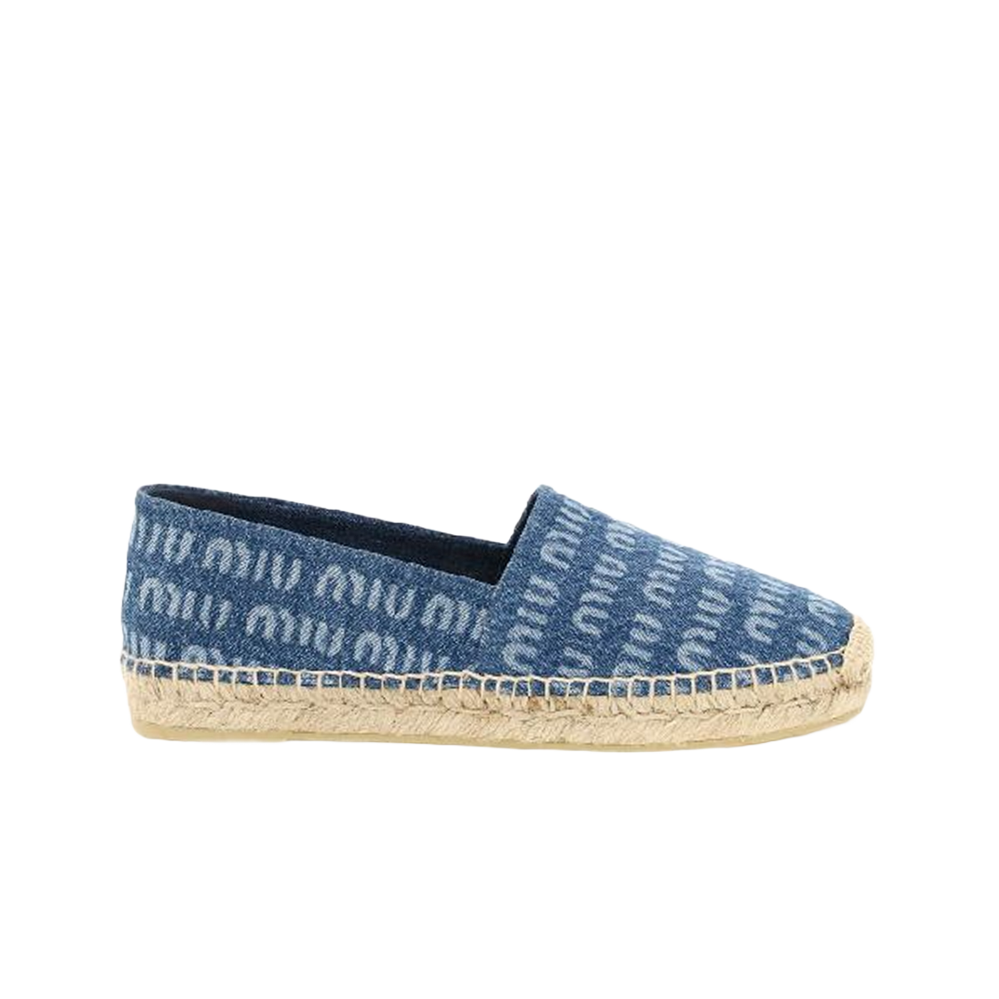 (W) 미우 미우 올오버 로고 프린트 에스파듀 데님