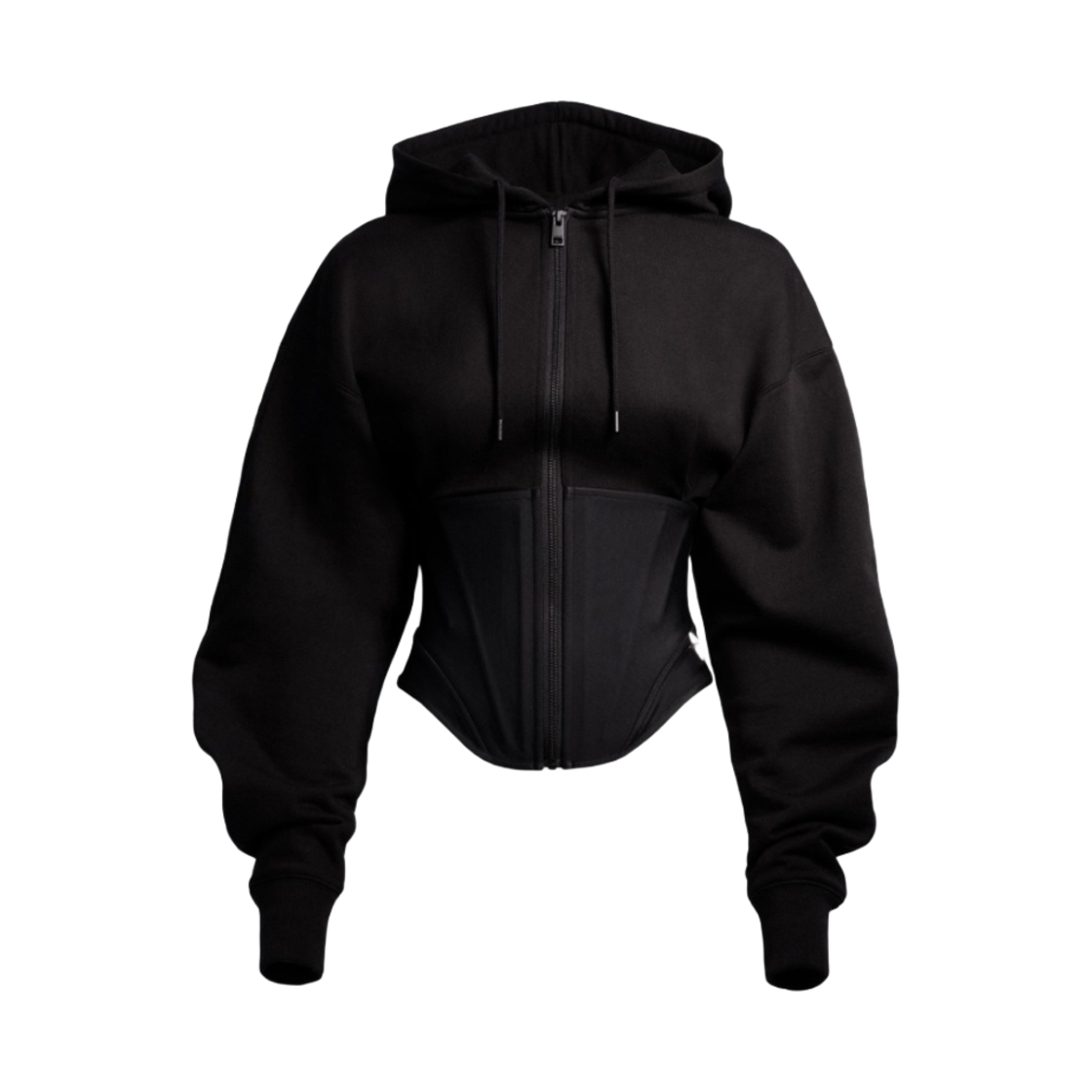에이치앤엠 x 뮈글러 코르셋 웨이스트 후드 집업 블랙