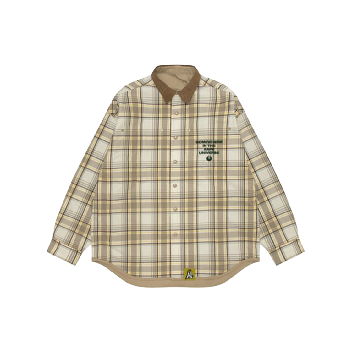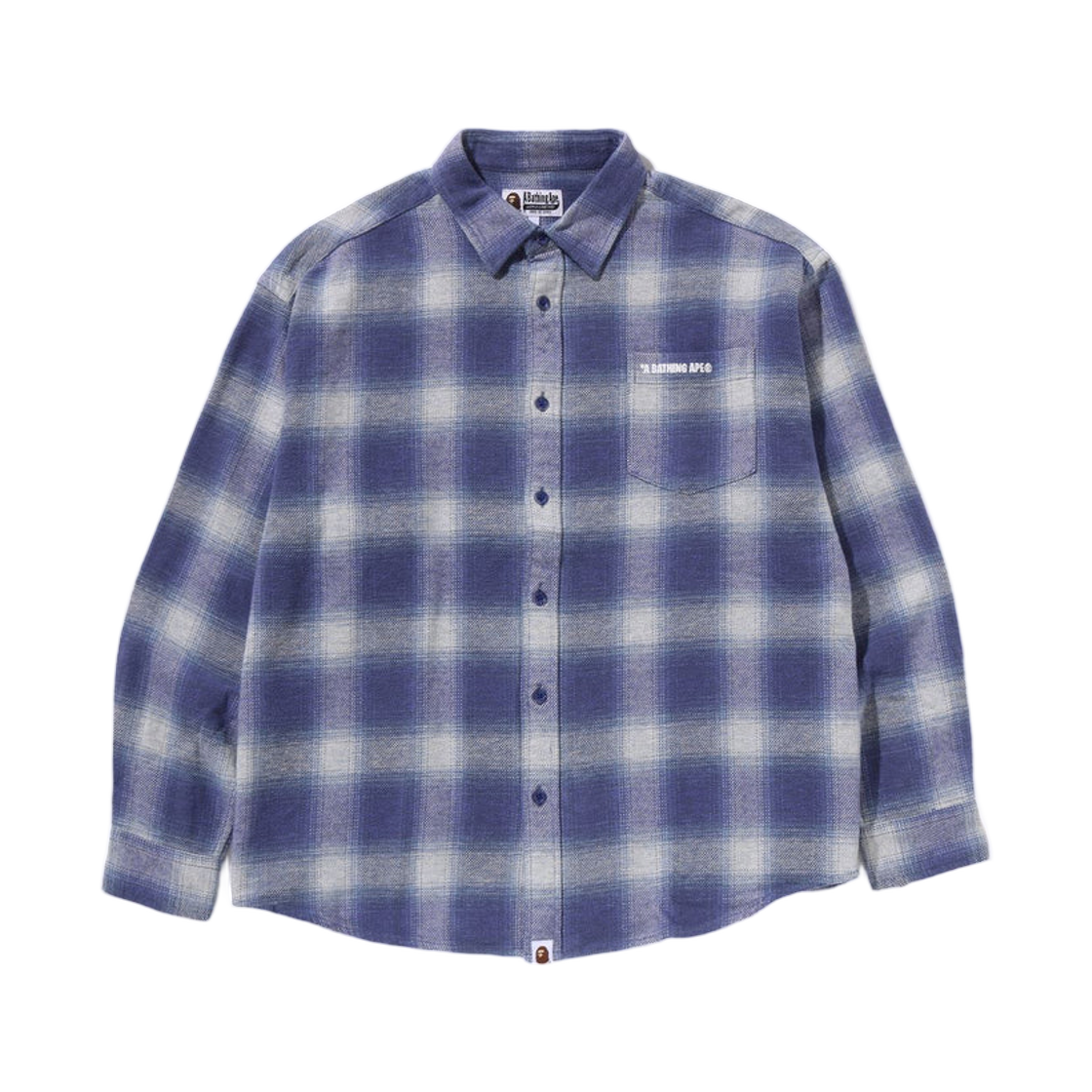 베이프 어 베이싱 에이프 로고 옴브레 체크 플란넬 롱슬리브 셔츠 베이지