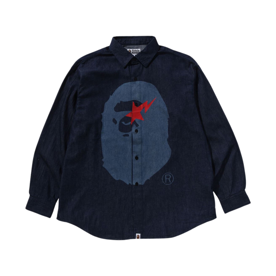 베이프 STA 에이프 헤드 릴렉스드 핏 데님 롱슬리브 셔츠 인디고