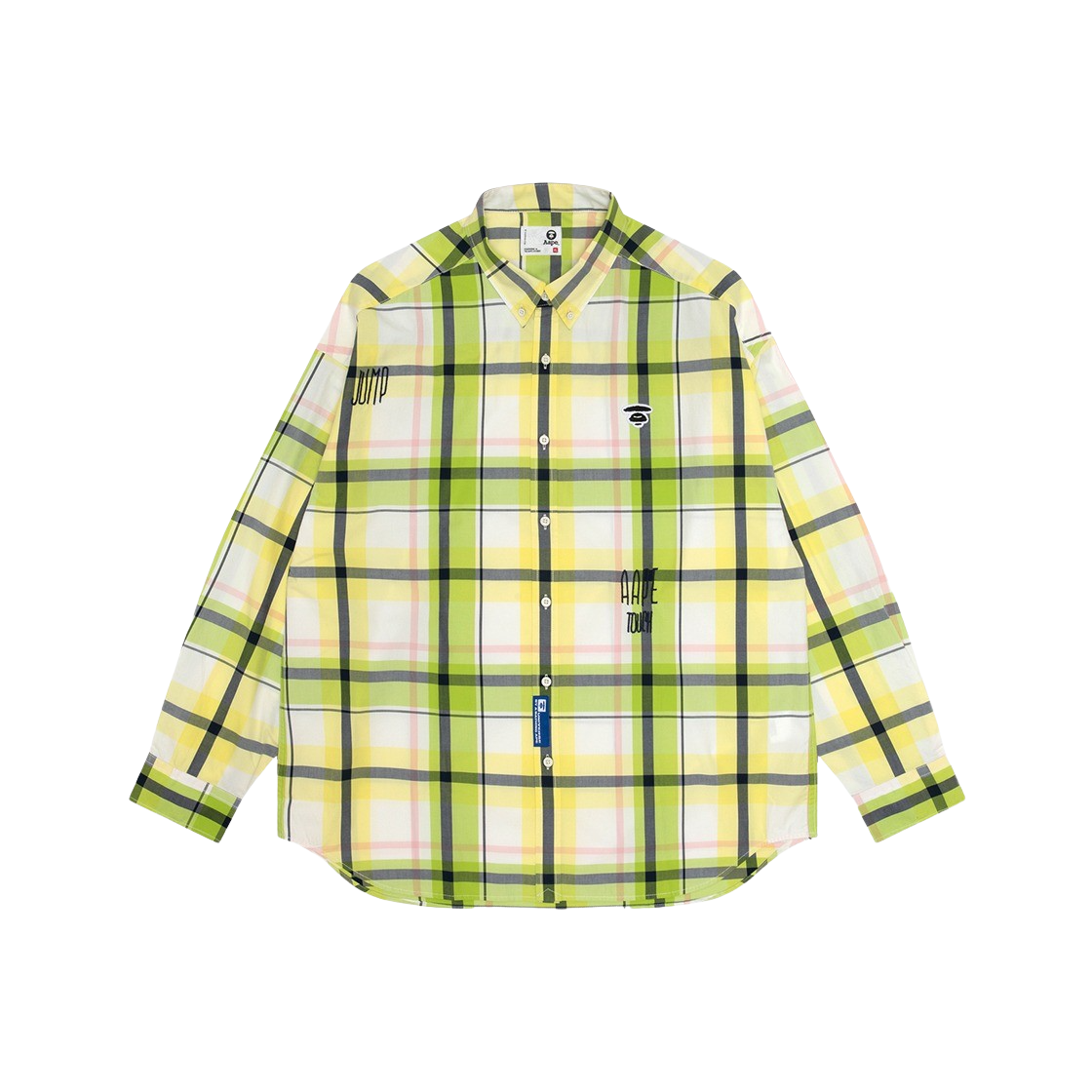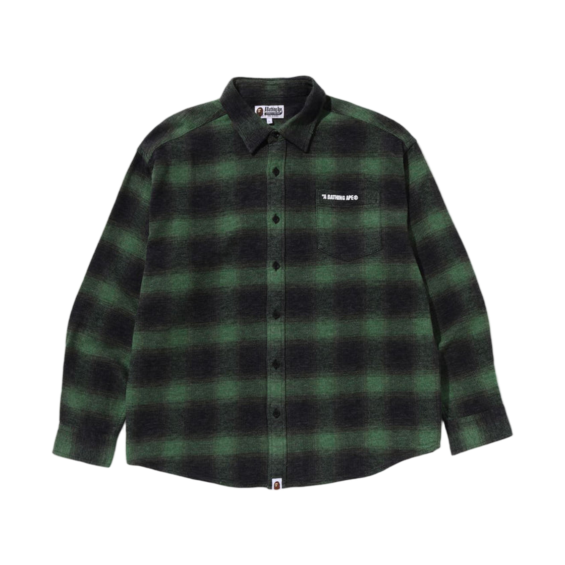 베이프 어 베이싱 에이프 로고 옴브레 체크 플란넬 롱슬리브 셔츠 그린