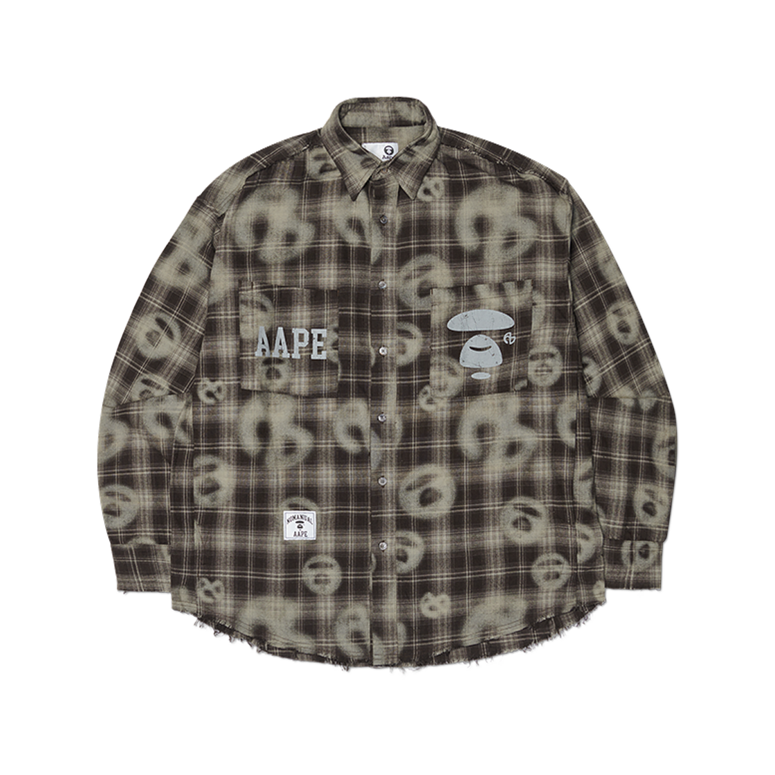 [KREAM 단독] 노매뉴얼 x 에이프 스프레이 심볼 체크 셔츠 브라운