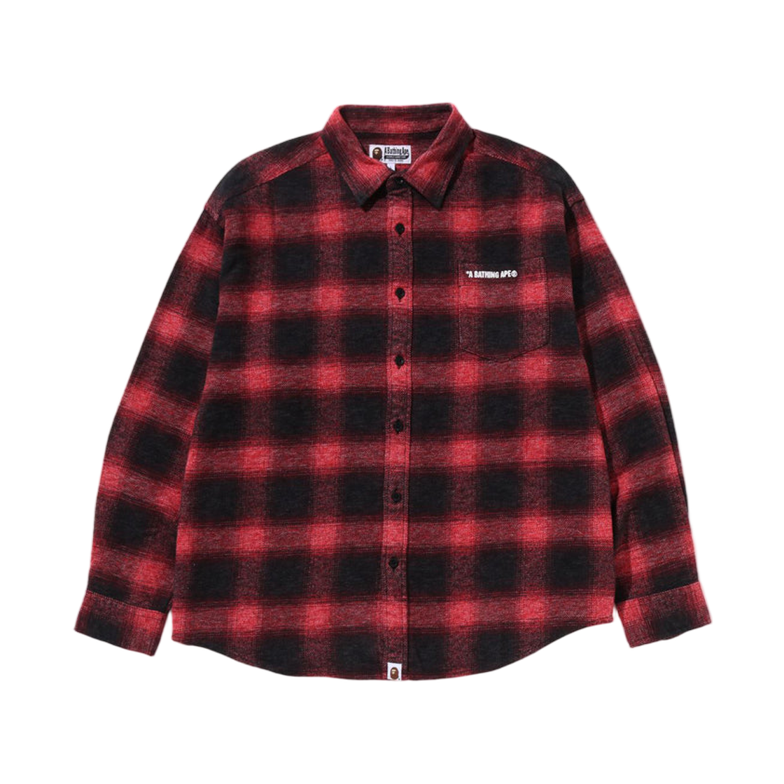 베이프 어 베이싱 에이프 로고 옴브레 체크 플란넬 롱슬리브 셔츠 레드
