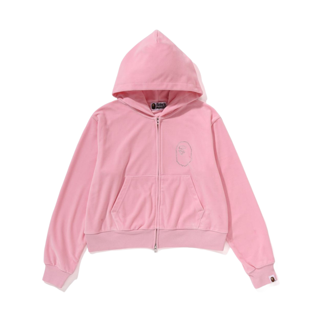 (W) 베이프 크리스탈 스톤 에이프 헤드 벨루어 지퍼 후드 핑크