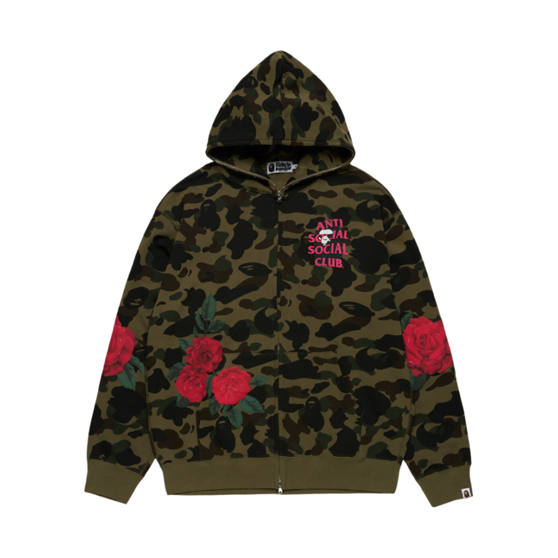 베이프 x 안티 소셜 클럽 어 베이싱 에이프 풀 집 후드 그린