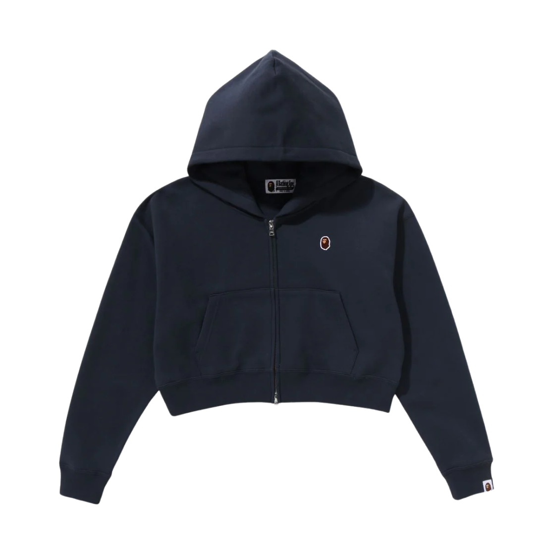 (W) 베이프 에이프 헤드 원 포인트 크롭 집 후드 네이비