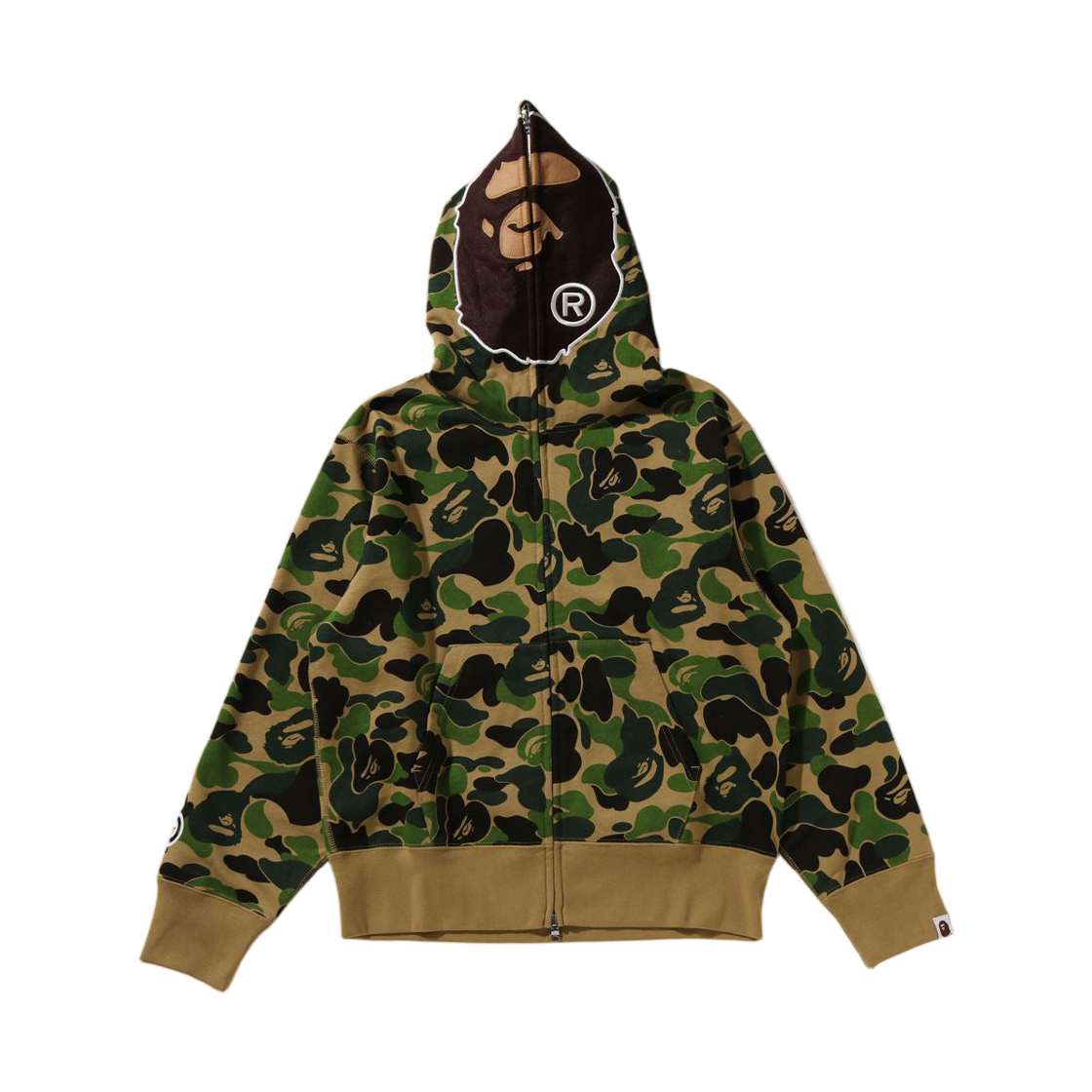 (W) 베이프 182 ABC 카모 세컨드 에이프 풀 집 후드 그린