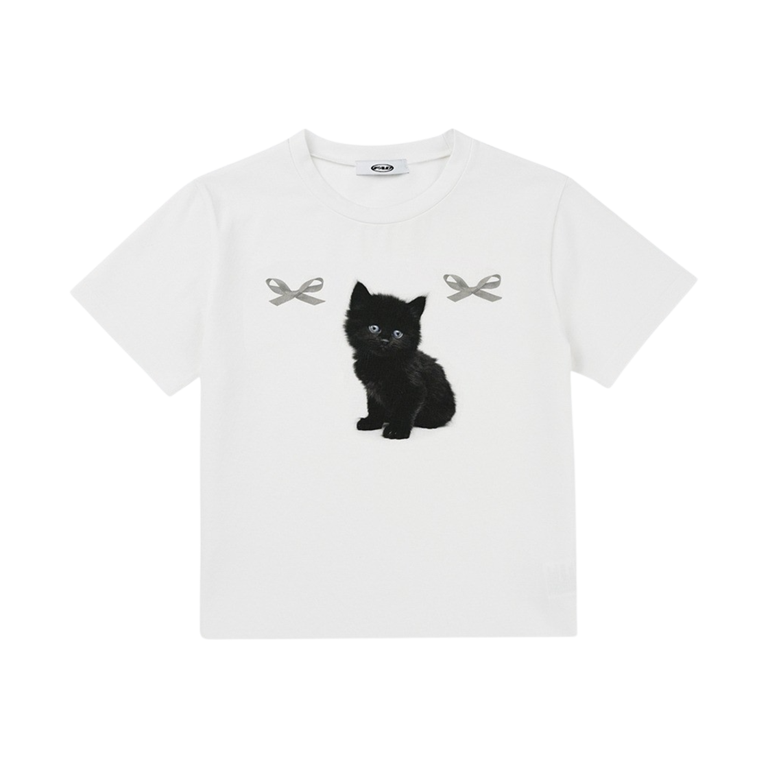 에프에이디 스위티 그래픽 캣 티셔츠 화이트