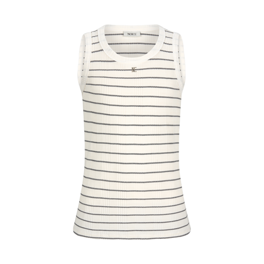 노이스 로고 스트라이프 슬리브리스 탑 화이트
