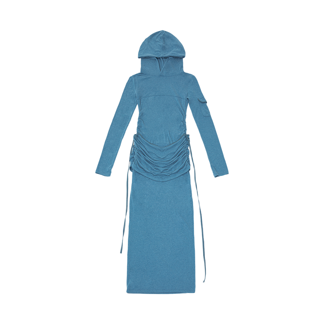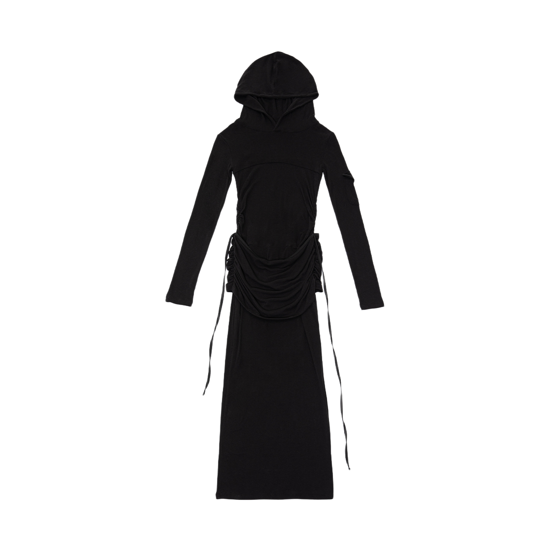 웻태그 드레이프 후드 맥시 드레스 블랙