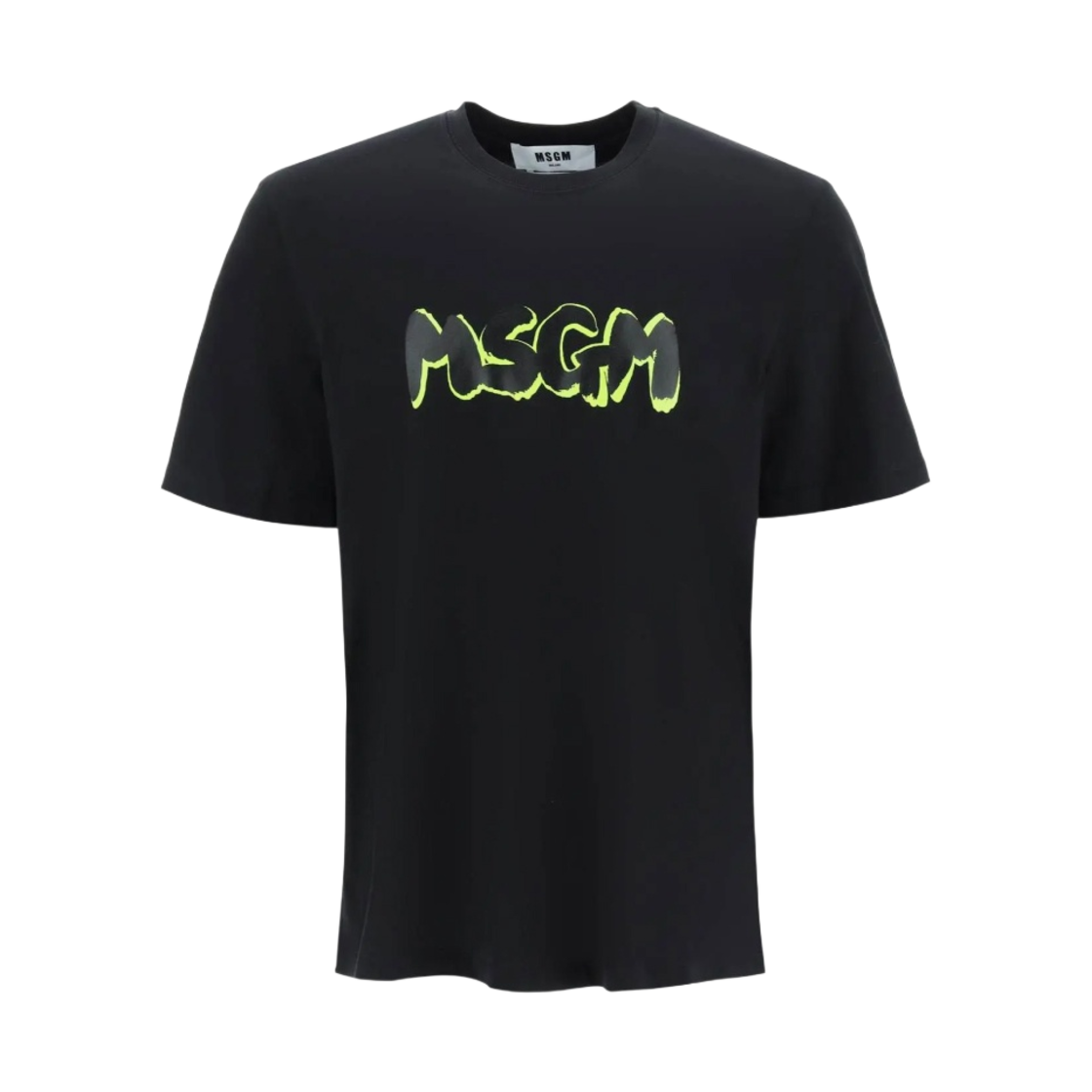 엠에스지엠 플로레센트 쉐이드 뉴 브러쉬드 엠에스지엠 로고 코튼 크루넥 티셔츠 블랙