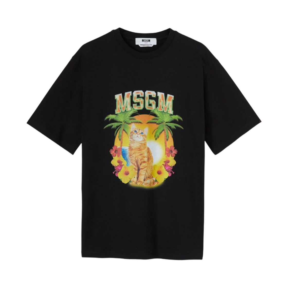 (W) 엠에스지엠 컬리지 캣 그래픽 코튼 크루넥 티셔츠 블랙